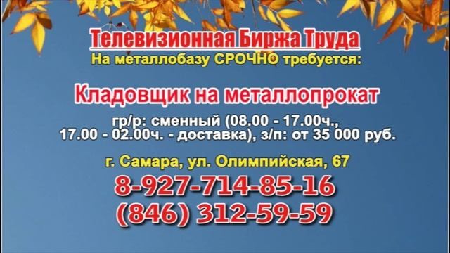 Вакансии и телефоны прямых работодателей в специализированной программе по трудоустройству "Телевизионная Биржа Труда" - г.САМАРА, г.ТОЛЬЯТТИ