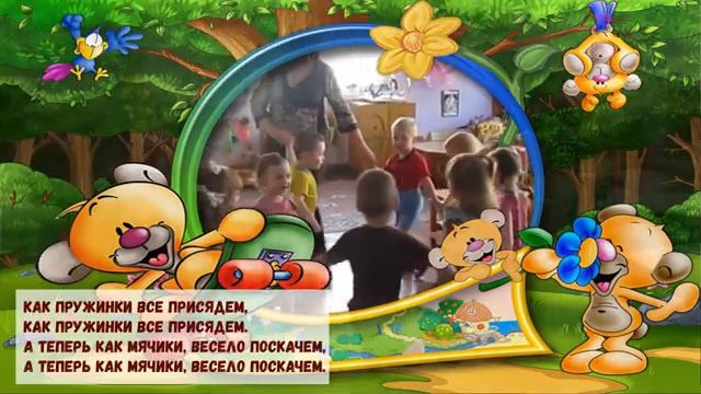 Пальчик о пальчик тук да тук, Пальчик о пальчик тук да тук. Хлопают ладошки звонко - звонко, Хлопают ладошки звонко - звонко. Тихо - тихо ножки пляшут, Тихо - тихо ножки пляшут. Громко - громко топ да топ, Громко - громко топ да топ. Как пружинки все присядем, Как пружинки все присядем. А теперь как мячики, весело поскачем, А теперь как мячики, весело поскачем. Пляшут ручки, пляшут красиво, Посмотрите, что за диво. Покружились детки и остановились, Покружились детки и поклонились.