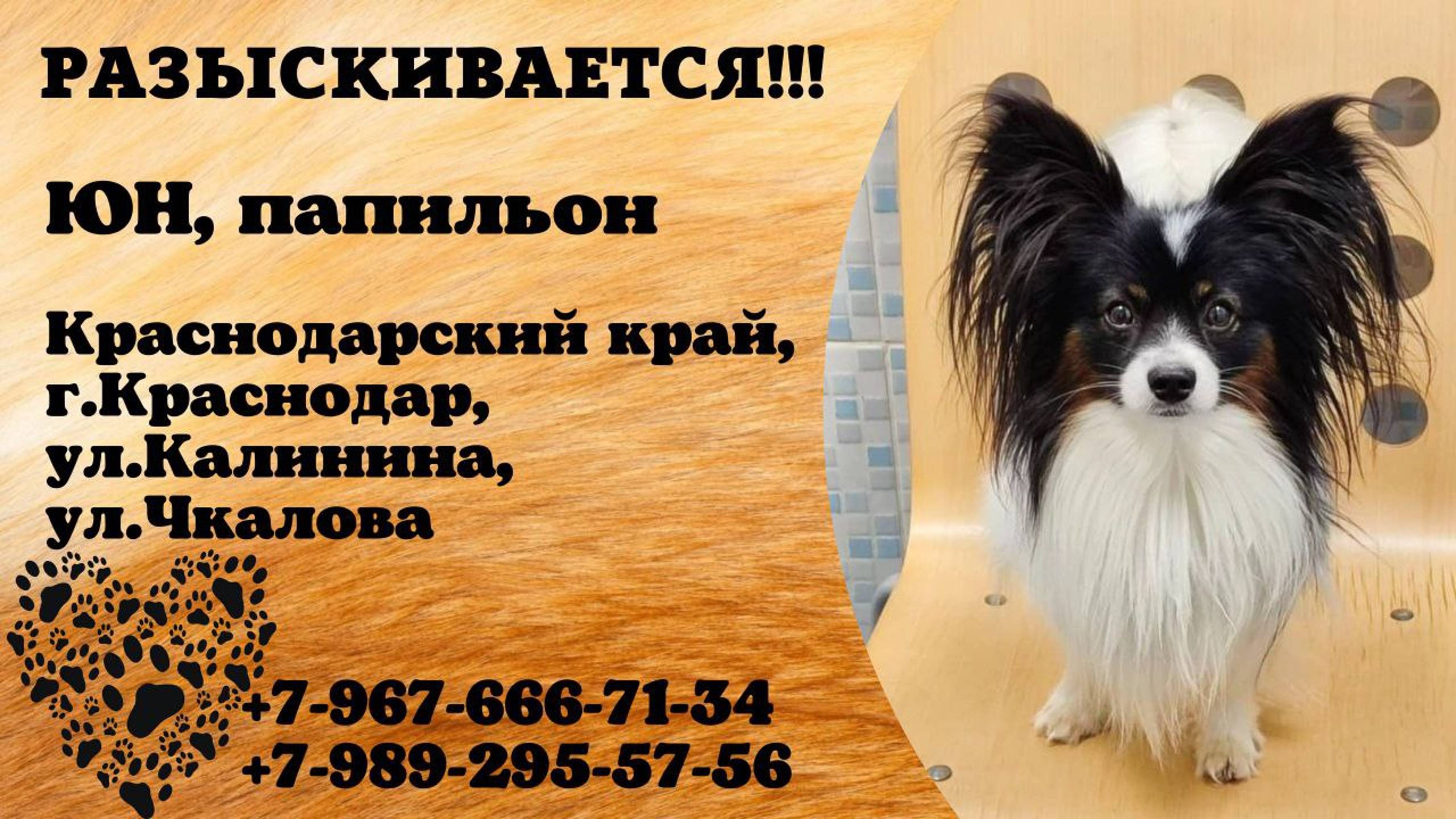Краснодарский Краснодар Пропала собака Кобель Папильон Кличка Юн Есть клеймо на животе, оранжевый ошейник, есть адресник У собаки сильная аллергия, он на дорогих препаратах, ему ничего нельзя, кроме специализированного корма. Некроз шейки бедра Людей не боится. 6.10.2025 Потерялся ориентировочно 14.00 в районе улицы Калинина ,Фрунзе, Чкалова , где строительные склады Предположительно был украден +7 9676667134 +79892955756 Вознаграждение нашедшим! Пожалуйста сообщения только по делу. Не надо сочувствовать. Нужно решать ситуацию Автор https://vk.com/id197399320 Инфо https://vk.com/wall-198815410_212490 #пропала_собака#краснодар