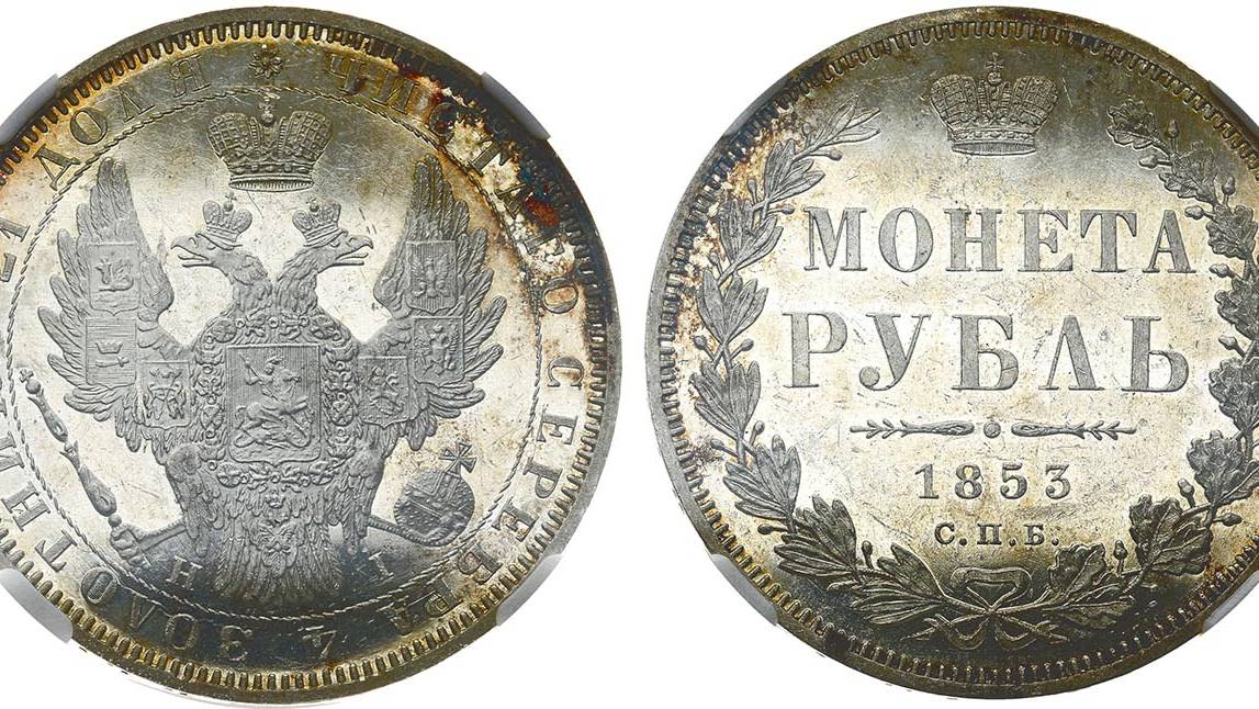 Аукцион 43. Лот 727 - 1 рубль 1853 года. СПБ-НI. В слабе ННР PF 62.