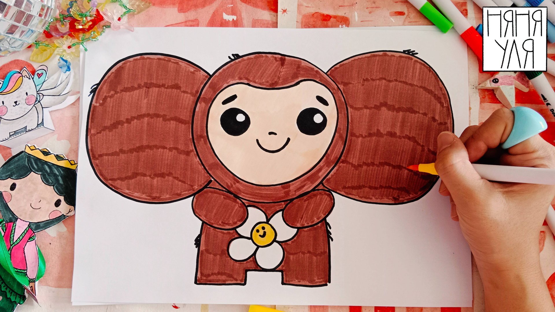 Как нарисовать ЧЕБУРАШКУ поэтапно для детей | Няня Уля уроки рисования