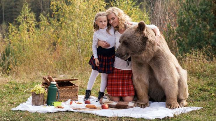 Композиция мелодия и 1) фото обнимающихся выдр 00 - 01:22; 2) фото отдыха семьи с медведем 01:23 - 02:54