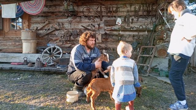 Кормим козлят!