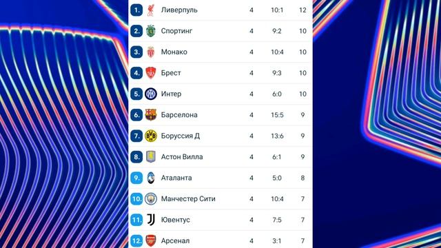 Лига Чемпионов 2024-2025 общий этап 4й-тур и таблица #football #championsleague #лигачемпионов