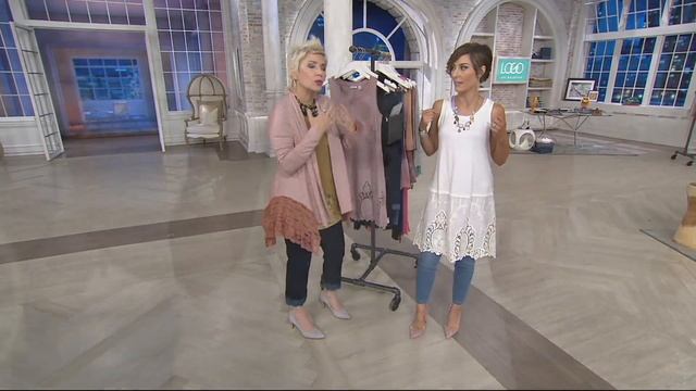 LOGO by Lori Goldstein Long Solid Tank w/ Embroidered Panel at Hem on QVC