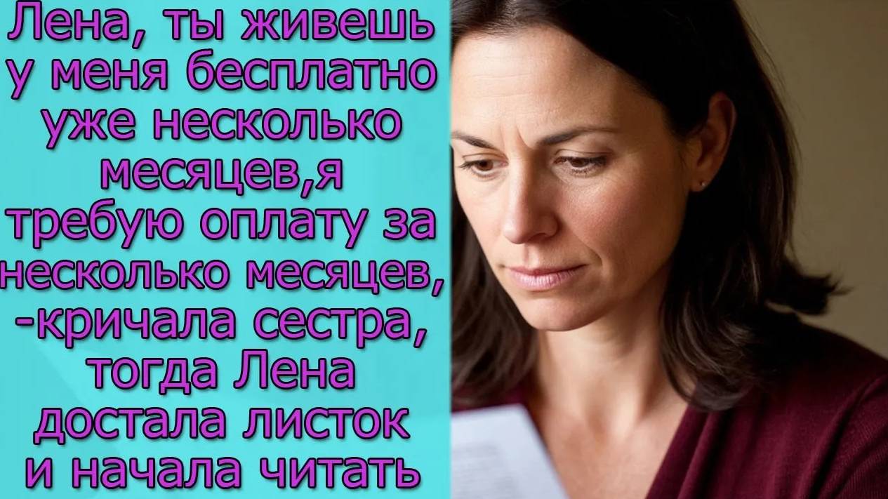 Лена, ты живешь у меня бесплатно несколько месяцев,- кричала сестра, тогда она достала листок и...