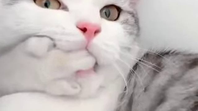 Кошка закрыла лапой, пасть коту. #кошки #прикол #забавно #лапа