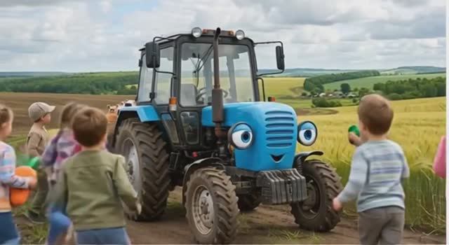 Синий трактор(мультфильм)-играет с детьми