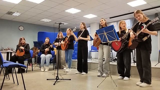 Концерт творческой студии SoloArt и ансамбля "Крылья" в Библиотеке им. Белинского в Екатеринбурге. Много хороших девушек, все умеют петь и играть на разных инструментах. И парень-барабанщик унылого вида. Один солист не приехал, но он есть.