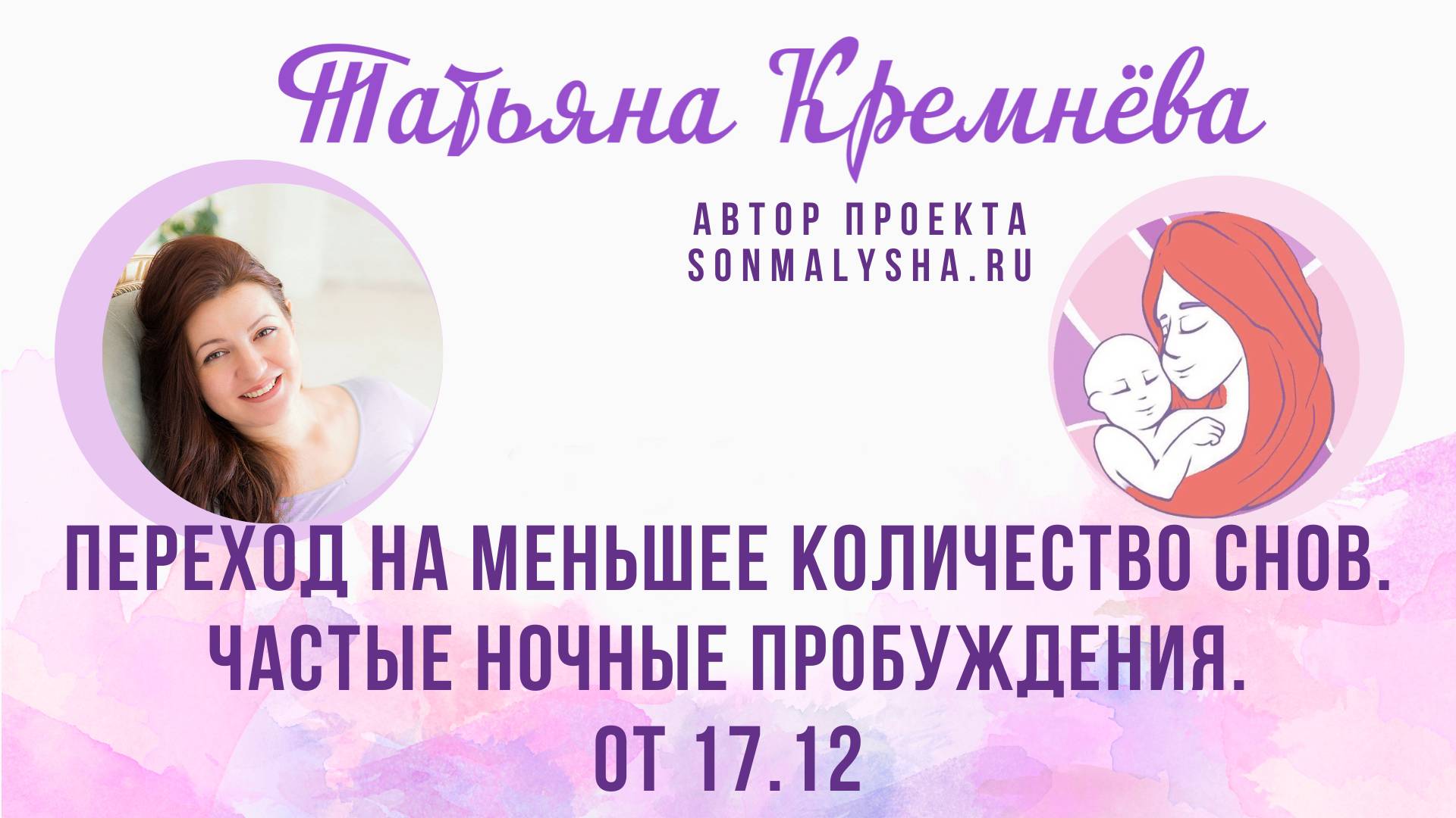 0:00 вступление 1:34 все дети разные 2:39 раннее бронирование курса 3:25 переход на 2 сна, чнп 9:31 отказ от дс 13:33 ритуал на сон 17:16 увеличение вб при переходе 19:19 откат после болезни 24:40 беспокойный ночной сон 31:00 сократился ночной сон 38:40 работа с психологом в проекте Сон Малыша 40:38 с рождения спит только на руках 43:14 обучение на консультантов по сну