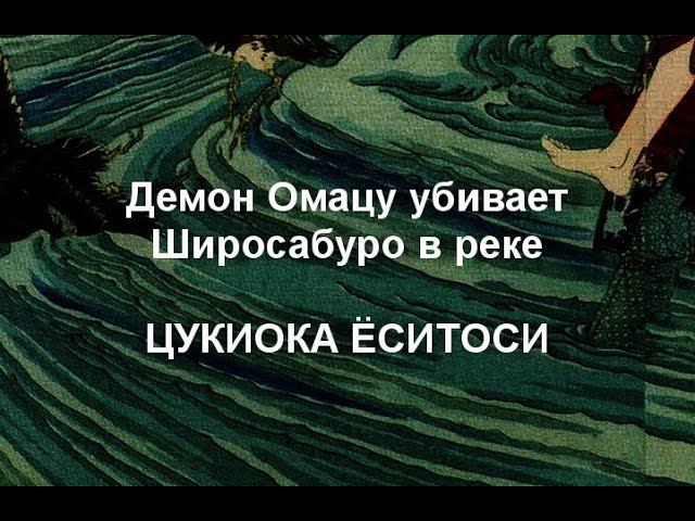 Демон Омацу убивает Широсабуро в реке ЦУКИОКА ЁСИТОСИ описание