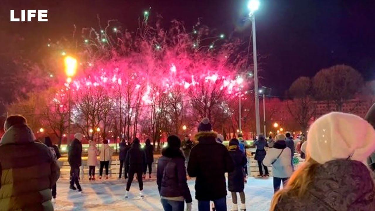 Фейерверк в честь открытия катка в московском парке Горького