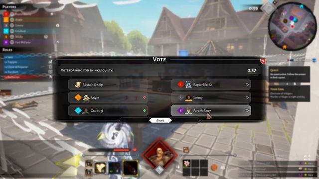 A Werewolf/Town-of-Salem Hybrid, Day and night cycles with quests and side-objectives.