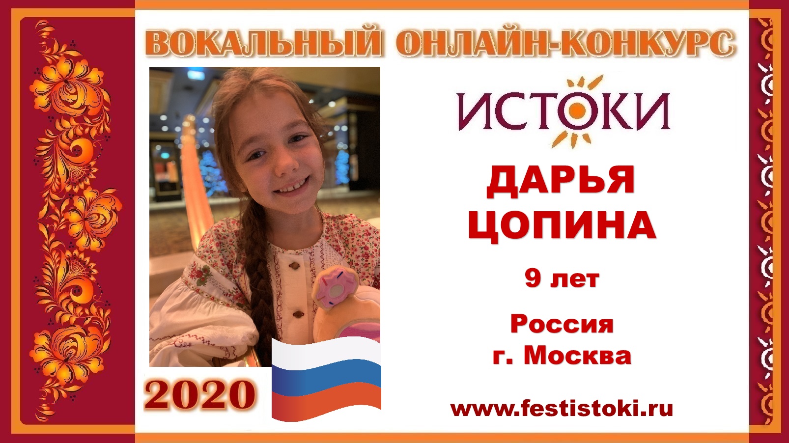 Участница Вокального онлайн-конкурса "Истоки"-2020. Песня "Гагара". Авторы: Александр Морозов, Н. Тряпки. Сайт: www.festistoki.ru / www.festistoki.com E-mail: festistoki@mail.ru