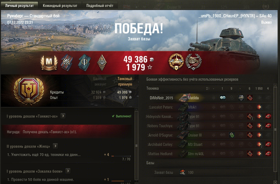 РУИНБЕРГ МАСТЕР на Somua SAu 40 ОПЫТ: 879 УРОН: 1950 медали ОСНОВНОЙ КАЛИБР ЗАХВАТЧИК