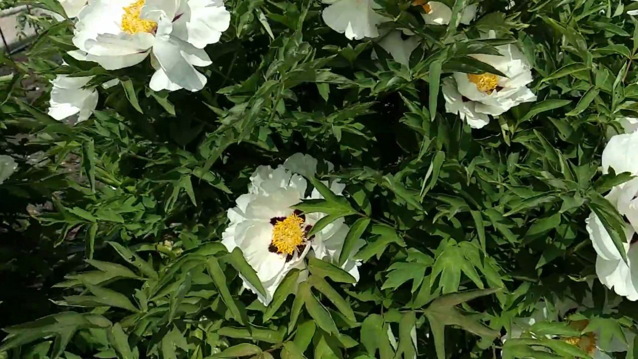 Огромные кусты древовидных пионов в цветении. Нежнейшая белая пена из цветов.
