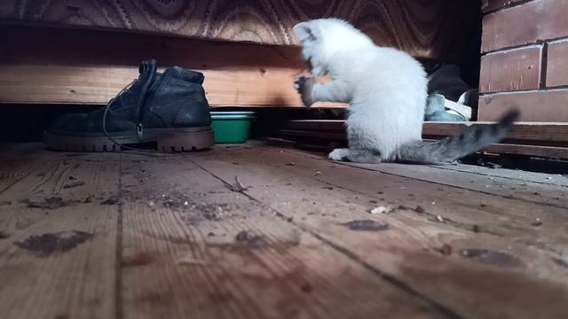 Котёночек играет с мышонком
