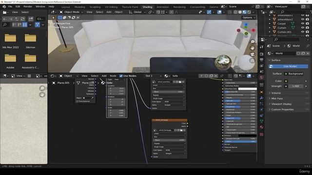 29. Box mapping and texturing L shaped sofa. RENDERING MODERN LIVING ROOM in Blender видео уроки
