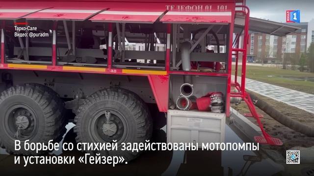 Откачивать воду в промзоне Тарко-Сале помогают пожарные насосы и мотопомпы