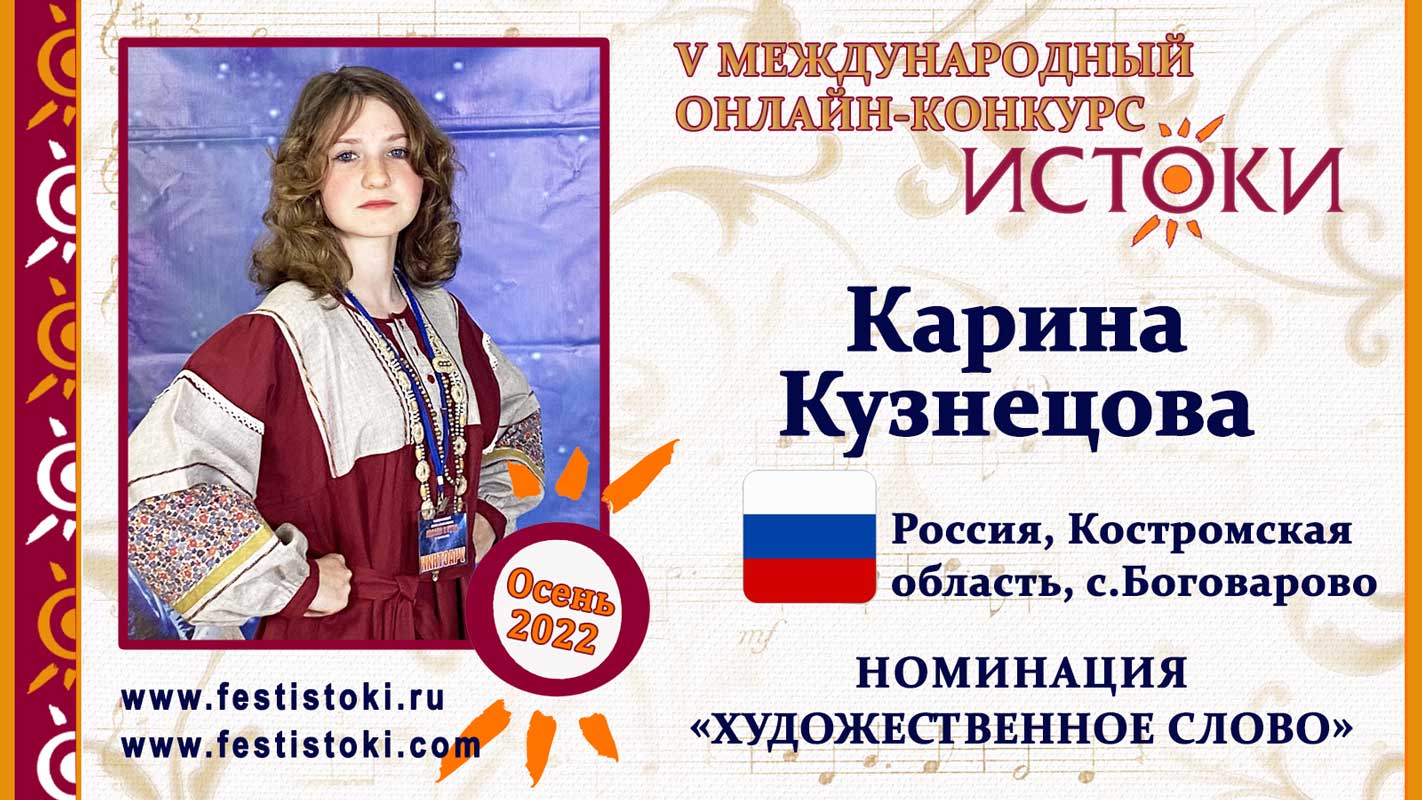 Участник V Международного онлайн-конкурса "Истоки". Номинация "Художественное слово". Отрывок из народной сказки "Морозко". Аутентичная сказка Вологодской области, Кичменско-Городецкий район. Сайт: www.festistoki.ru / www.festistoki.com E-mail: festistoki@mail.ru