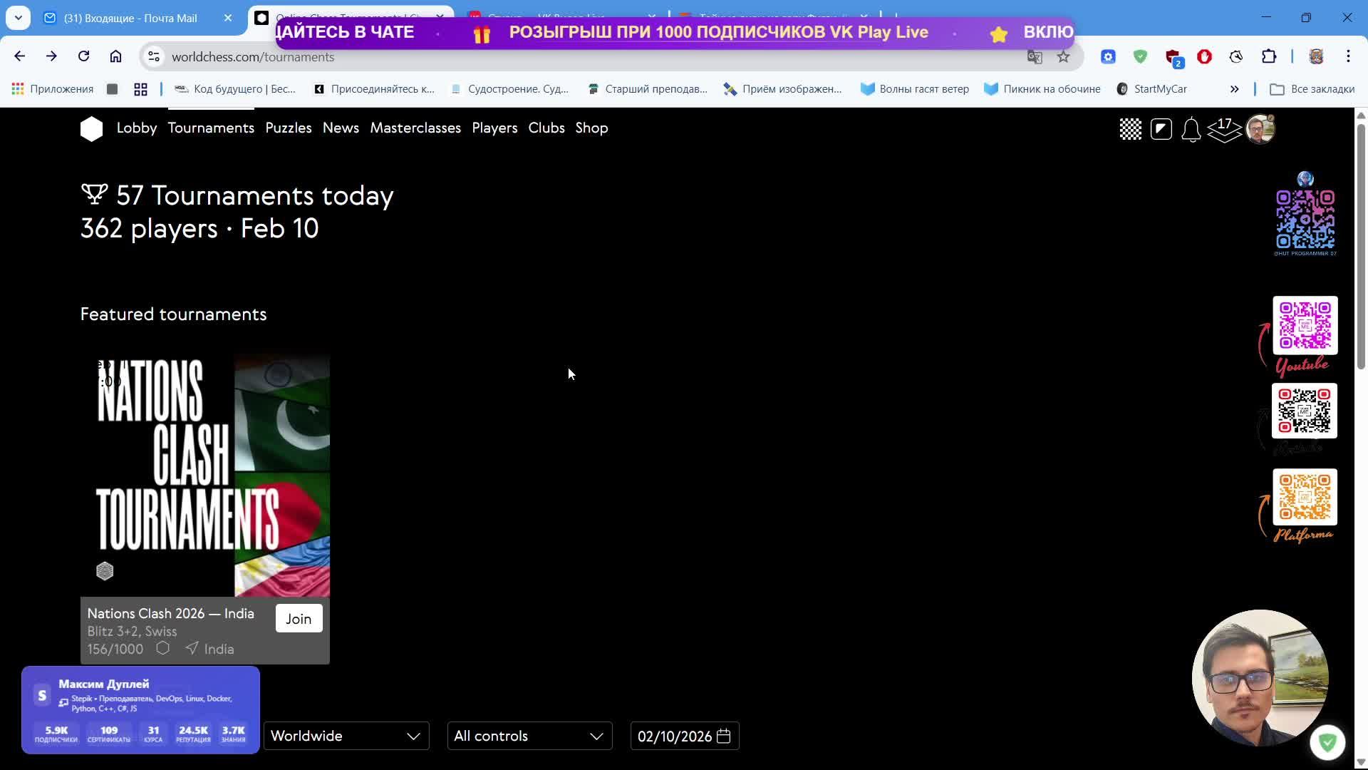 📖 Maksim Dupley - 26 years, Russia (https://worldchess.com/profile/1094367) 📖 FIDE ID: 540098680 🖥️ Канал на RuTube: https://rutube.ru/channel/4218729 🖥️ VK Группа: https://vk.ru/public183207497 🖥️ Telegram Канал: https://t.me/hut_programmer_07 🌐 Курс «Программирование на С++ для начинающих»: https://stepik.org/a/178781 🌐 Курс №1 «Программирование на Python для начинающих» https://stepik.org/a/178774 🌐 Курс №2 «Программирование на Python. Написание собственных проектов 📚» https://stepik.org/a/179035 🌐 Курс №3 «🐳 Docker для начинающих: Шаг за шагом» https://stepik.org/a/205094 🌐 Курс №4 «Режиссёр видеомонтажа – обучение профессии для начинающих» https://stepik.org/course/208571/promo ➡️ Cсылка на записи в GitHub: https://github.com/QuadDarv1ne/maestro7it_education ➡️ Cсылка на репозиторий WeatherCast-Analytics: https://github.com/QuadDarv1ne/WeatherCast-Analytics 💡 Официальный сайт школы программирования Maestro7IT: https://school-maestro7it.ru/ ※ Предложения по сотрудничеству можете присылать на почту ※ 📧 maksimqwe42@mail.ru ========================= ПОДДЕРЖКА КАНАЛА ========================= 🎆 Станьте спонсором канала, и вы получите доступ к эксклюзивным бонусам. 💵 PayPal: ✻ maksimqwe42@mail.ru 💻 WebMoney: ✻ Z-933058107421 💳 Tinkoff: ✻ 2200 7020 9965 6097 📑 QIWI: ✻ +7-9150480249 👛 ЮMoney: ✻ 410013949580469 💻 TON: UQC7N6UZT2IndxlPB_KTFHAy2eu_vpZjCojWiDe565N5caAl 💻 www.buymeacoffee.com/quadd4rv1n7 ====== ПОДТВЕРЖДЕНИЕ В ГОСУСЛУГАХ ====== 📔 Сведения о канале в реестр Роскомнадзора 〽️ Номер заявления: № 5631221658 ⌨️ Теги: #музыка #квалификация #сертификат #сертификация #аналитика #топыкатегорий #сезонконтентаRUTUBE #analytics #python #cpp #csharp #java #javascript #linux #sql #maximdupley #quadd4rv1n7 #maestro7it #2025