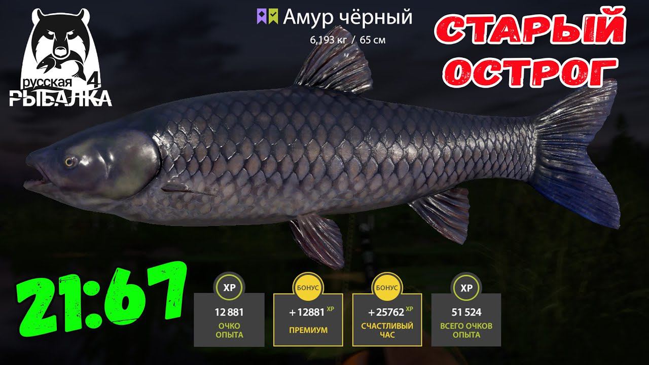 АКТИВНЫЙ КЛЕВ ЛИНЯ ЧЕРНОГО АМУРА КАРАСЯ НА СТАРОМ ОСТРОГЕ В РУССКОЙ РЫБАЛКЕ 4 РР4