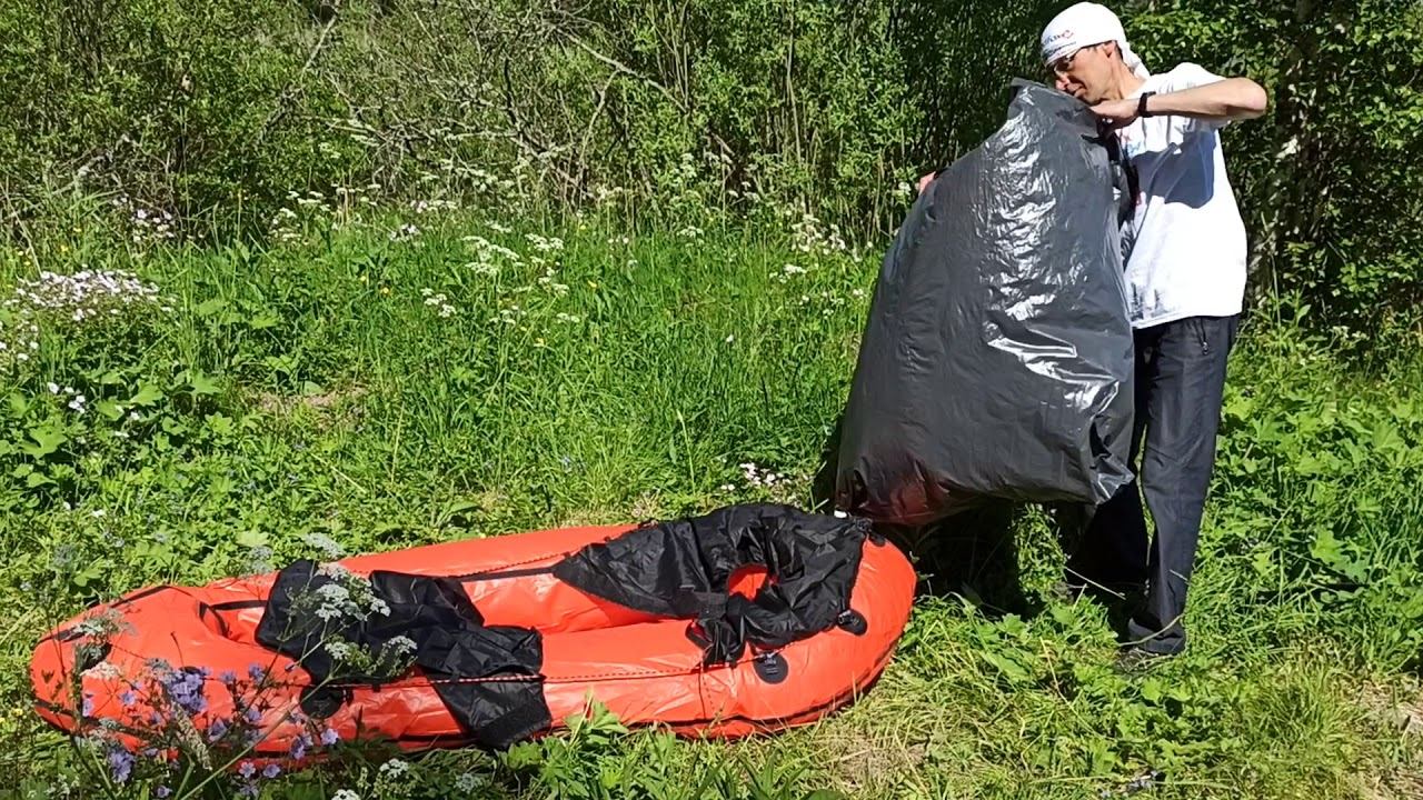 Надувание пакрафта Кулик мусорным мешком через переходник из двух бутылочных пробок
