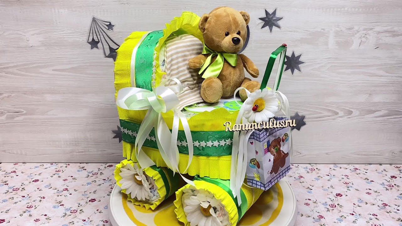Авторская коляска из подгузников с мишкой - оригинальный подарок на рождение ребенка. Детальнее о товаре https://ranunculus.ru/podarki-na-rozhdenie-rebenka/torty-iz-pampersov/kolyaska-iz-podguznikov-s-mishkoy/ Торты из памперсов https://ranunculus.ru/podarki-na-rozhdenie-rebenka/torty-iz-pampersov/ Сайт https://ranunculus.ru