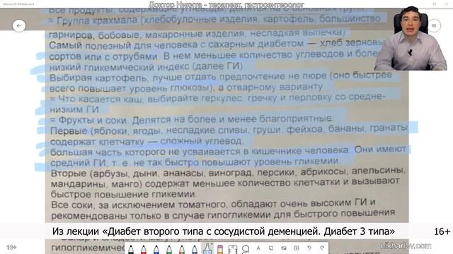 СТОЛ номер 9. Лечебное питание при сахарном диабете 2 типа. Диета вылечит инсулинорезистентность? Рекомендация Научного Центра Эндокринологии для страдающих диабетом 2 типа: питание при диабете 2 типа по разнообразию и полноценности, калорийности, сбалансированности не должно отличаться от рациона питания здорового человека без сахарного диабета. Углеводы у них должны составлять 55-60% от общего потребления пищи, жиры 25-30%, белки 15-20%. Но, исходя из физиологии человека, минимальная потребность в углеводах отсутствует. Если их нет (питание без углеводов), организм сам будет делать у себя, не потребляя извне. Жиры и белки – да, такая потребность существует, и она разная для разных людей. Парадокс в том, что научный центр рекомендует диету стол номер 9 ту самую, которая привела человека к диабету. При этом за основу берётся гликемический индекс продуктов питания, в то время как должна быть гликемическая нагрузка продуктов – количество углеводов, умноженное на гликемический индекс. Для контроля уровня сахара в крови важно учитывать именно гликемическую нагрузку, количество углеводов, чтобы безошибочно рассчитать потребность в инсулине. Хорошо что они рекомендуют не крахмалистые овощи и зелень, содержащие клетчатку, и это для диабетиков будет полезным. Но в целом диета №9 провоцирует дальнейшее развитие диабета 2 типа и никак не вылечит от инсулинорезистентности. Сейчас уже известно и признано, что диабет 2 типа поддаётся ремиссии, и в ремиссию по диабету второго типа можно войти, используя правильные знания о диабете и подход к питанию. Сколько углеводов белков жиров в день, физиология организма человека, ремиссия диабета, кетогенная диета. #ПитаниеЛечебное #ДиабетСахарный #Инсулинорезистентность #ДиетаСтол9 #ИнсулинПотребность #УглеводыПотребность ===== Информация в данном видео предоставлена для ознакомления и расширения кругозора. Не является призывом к действию, НЕ заменяет консультации вашего лечащего врача. По вопросам вашего здоровья и возможных действий проконсультируйтесь с вашим медицинским профессионалом. ===== dr nik, doctor nikita, dr nikita, doctor nik, никита харлов ▶️ Полная лекция: Как диабет второго типа с сосудистой деменцией лечит научный центр эндокринологии. Диабет 3 типа https://www.youtube.com/watch?v=OeHLocbeBAs 📕 Альбом: Научный центр эндокринологии - Лечение диабета с сосудистой деменцией. Диабет 3 типа. https://www.youtube.com/playlist?list=PLMLarg_xd_MpJ-CtCVgl0pNF0xCRbGMyV 🔑Скоро лекция: Железо, Цинк, Медь, Витамин С https://bit.ly/CuFeZn-VitC ✅ Консультации с доком Никитой https://nikharlov.com/consult/ 💎Сайт Доктор Ник https://nikharlov.com/ ⭐️Лечебные лекции https://academy.nikharlov.com 💧Лекция ЭЛЕКТРОЛИТЫ https://bit.ly/Na-K-Cl 💯Полезный телеграм https://bit.ly/TG-fat 💜Как помочь творчеству https://t.me/udothis/1305 🟠Лекция Вит. B1,2,3,5,6,7 https://bit.ly/EnergyVitsB 🔵Лекция МЕТИЛИРОВАНИЕ https://bit.ly/MethylatioN1k 🏆Подде?