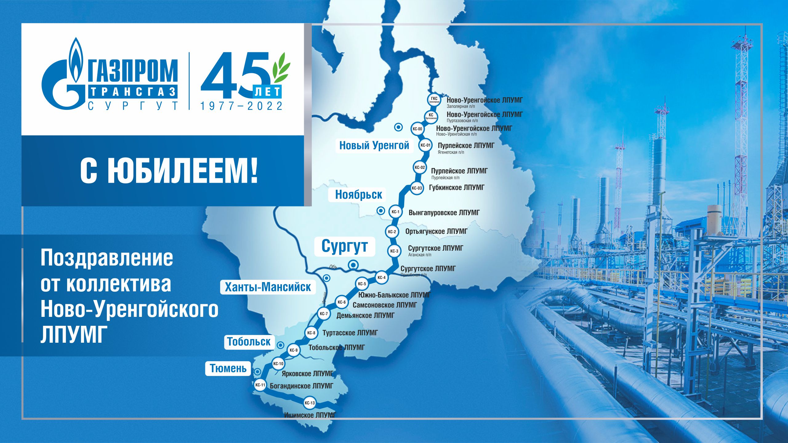 Поздравление с 45-летием предприятия от коллектива Ново-Уренгойского ЛПУМГ