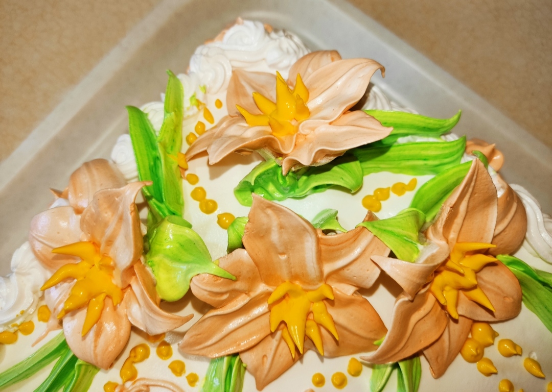 Торт кремовый с лилиями. #торт #кремовыйТорт #тортдляженщины #тортнаюбилей