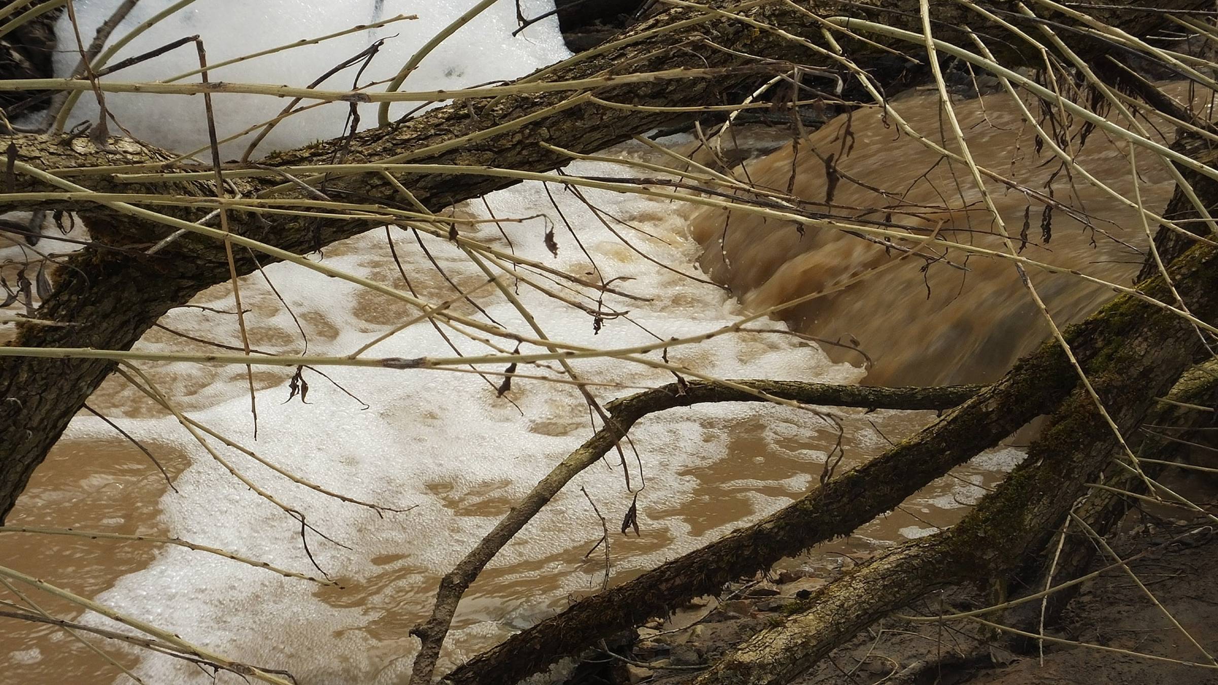 Половодье сравнялось с вершиной водопада. Затопило водопад. Не мог я тогда ходить к нему каждый день и в этом 2025 году разорваться не получается.