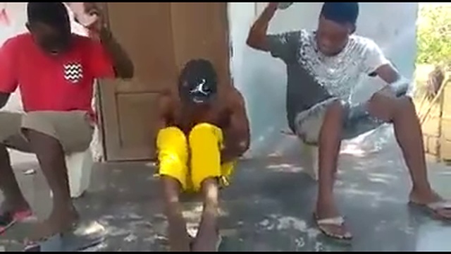 Парни пытаются попасть сланцами по рукам своего шустрого друга. #прикол #развлечение #сланцы #друзья #африканцы