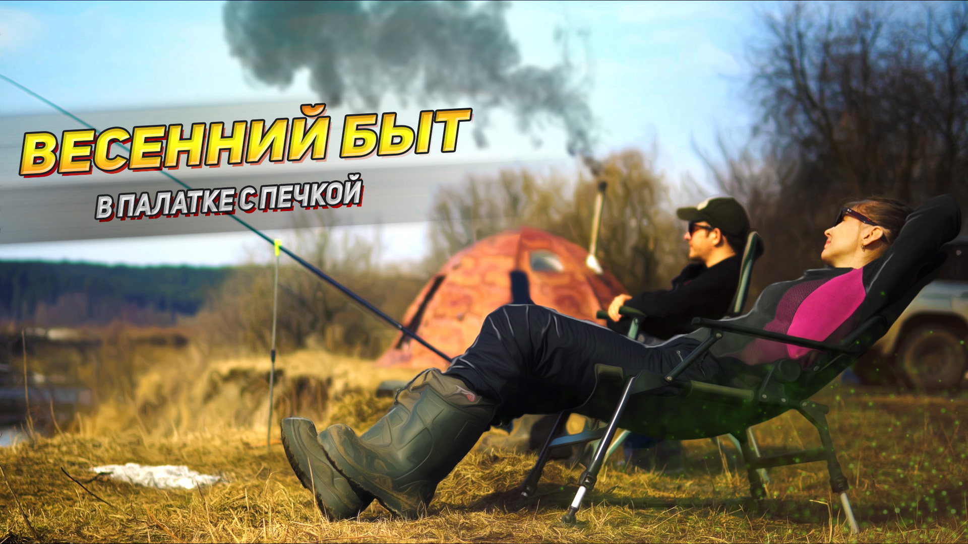 Мы выбрались в лес в первый весенний поход! Будем жить в теплой палатке с печкой, рыбачить с живописного берега, жечь костер и готовить уху!