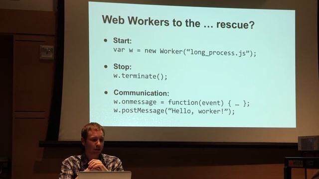 Slides: https://goo.gl/Fgfj7f Offloading computationally expensive tasks to the client can save your business a lot of money and make your app run faster. In this talk, I describe some specific tactics for pushing the browser to its limits so your users get the best experience while keeping the browser tab alive under pressure. The main topics are multi-threading and file slicing. This talk is somewhat technical, but it should pique the interest of business professionals who want to cut costs. At my last job, we saved the company thousands of dollars per year in infrastructure costs by moving file processing to the clients. We also cut our code base by a factor of 10. About Matt Holt: I code stuff with my bare hands. Been writing code since I was 11. Gopher, open source advocate, and no conjurer of cheap tricks. I'm the author of Papa Parse, a fast, client-side CSV parser. Currently finishing up my Computer Science degree at Brigham Young University. Github: mholt Twitter: @mholt6