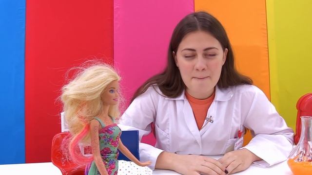 У Барби цветные волосы и тату. Мультик с куклами Барби