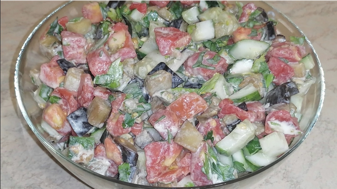 ? Друзья, ПОДПИШИТЕСЬ на мои каналы, чтобы не потеряться : Мой кулинарный канал "Юлины шедевры" на Яндекс дзен: https://zen.yandex.ru/id/6114b5840f7aab4547e52ae7 Мой кулинарный канал "Юлины шедевры" на рутубе : https://rutube.ru/channel/23947718/ Мой кулинарный канал "Юлины шедевры" в телеграмме: https://t.me/yulinamasterpiece Мой канал о жизни "Будни домохозяйки" на YouTube : https://www.youtube.com/channel/UCN7A1WGJnPkVfjw_l-5ccnA Мой кулинарный канал "Юлины шедевры" на YouTube : https://www.youtube.com/channel/UC-eR53AAREGnVh7wgLu8xBQ Мой канал о жизни "Будни домохозяйки" на Rutube : https://rutube.ru/channel/24692489/ Мой канал о жизни " Будни домохозяйки" на Яндекс дзен : https://zen.yandex.ru/id/626cdba5426424636f59ff55 ЯRUS : https://yarus.ru/u/8213366 ***** Баклажаны - 2 шт Огурцы - 3 шт Помидоры - 3 шт Чеснок - 2 зуб Кинза, петрушка Сметана Раст. масло Соль ***** Приятного аппетита!!!