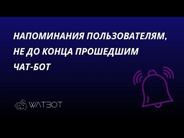 Всем привет! На связи команда Watbot - платформы-конструктора чат-ботов, которые вы можете собрать самостоятельно, не имея никаких навыков программирования! В этом вы научитесь напоминать пользователям, что они не остановились на каком-то этапе сценария чат-бота, не дойдя до конца. Вы узнаете, как это определить и как задать нужный интервал для напоминания. Подписывайтесь на наш канал, в следующих видео мы расскажем о других функциях платформы, которые помогут создать чат-бот, полностью соответствующий вашим ожиданиям. Причём вы можете как собрать его самостоятельно, так и заказать разработку «под ключ». Подробности можешь узнать на нашем сайте https://watbot.ru/?utm_source=youtube Будем рады видеть вас в нашем сообществе, присоединяйтесь по ссылке https://t.me/watbotcommunity #чатбот #чатботы #бот #телеграмбот #боты