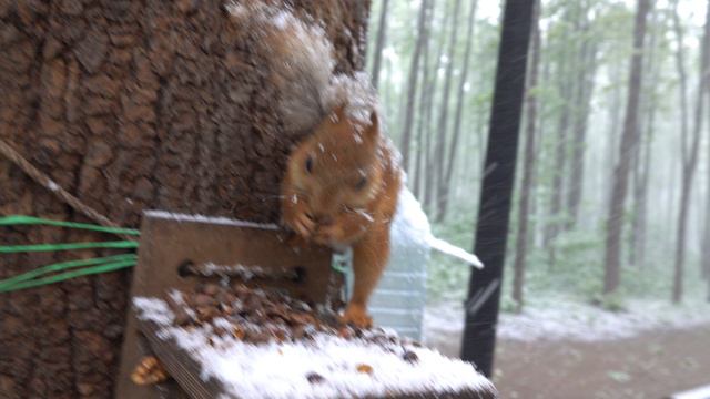 Май. Белки. Снег