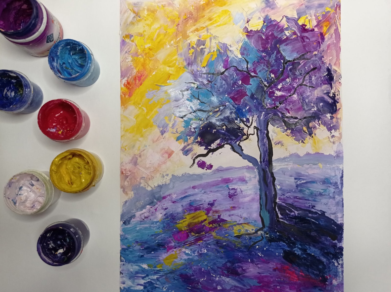 Пейзаж гуашью и мастихином