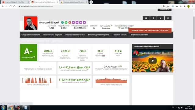 Всем привет,сегодня покажу вам Сколько зарабатывает Анатолий Шарий,узнаем ежемесячный доход канала Анатолий Шарий на Youtube,так же покажу вам заработок за всё время существования канала Анатолий Шарий.Приятного просмотра.