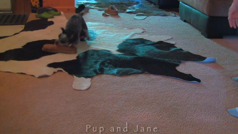 Щенок играет с тапочкой хозяина