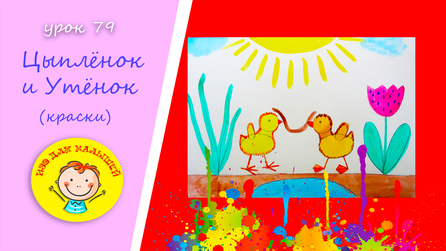 Рисуем ЦЫПЛЕНКА И УТЕНКА красками. УРОК 79.Тема: "цыпленок и утенок" -краски