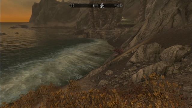 Skyrim. Волны бьются о берег Солстейма