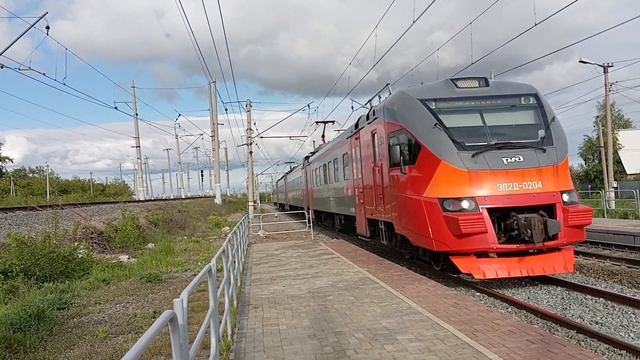 Электропоезд ЭП2Д-0204 с пригородным поездом №6804 Южноуральск - Челябинск Главный прибывает на О.п. 2092 км, г. Челябинск, Челябинская обл., ЮУЖД Дата: 27.05.2024