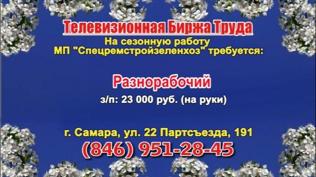 Вакансии и телефоны прямых работодателей в специализированной программе по трудоустройству "Телевизионная Биржа Труда" - г.САМАРА, г.ТОЛЬЯТТИ т/к РЕН-ТВ