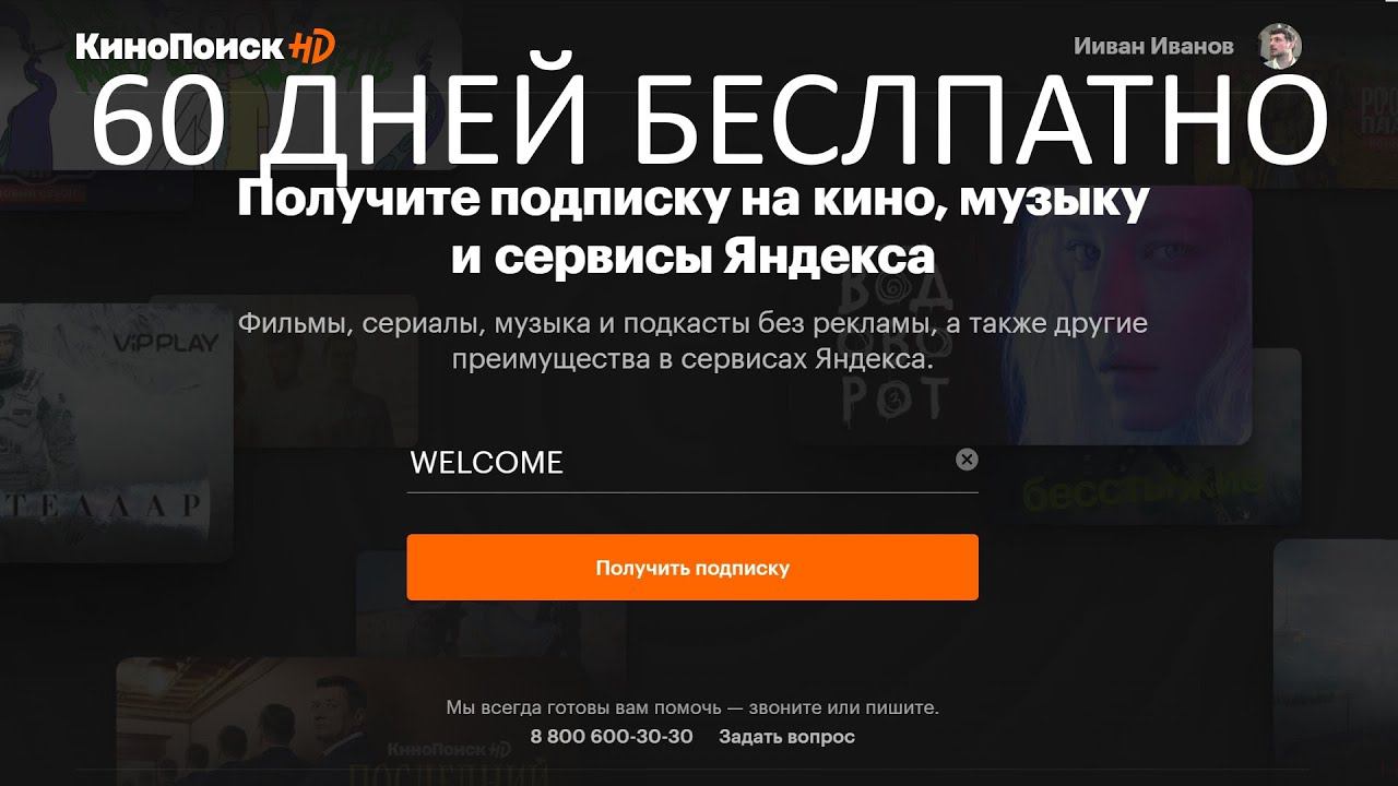 Промокод на 60 дней бесплатной подписки на КиноПоиск HD !