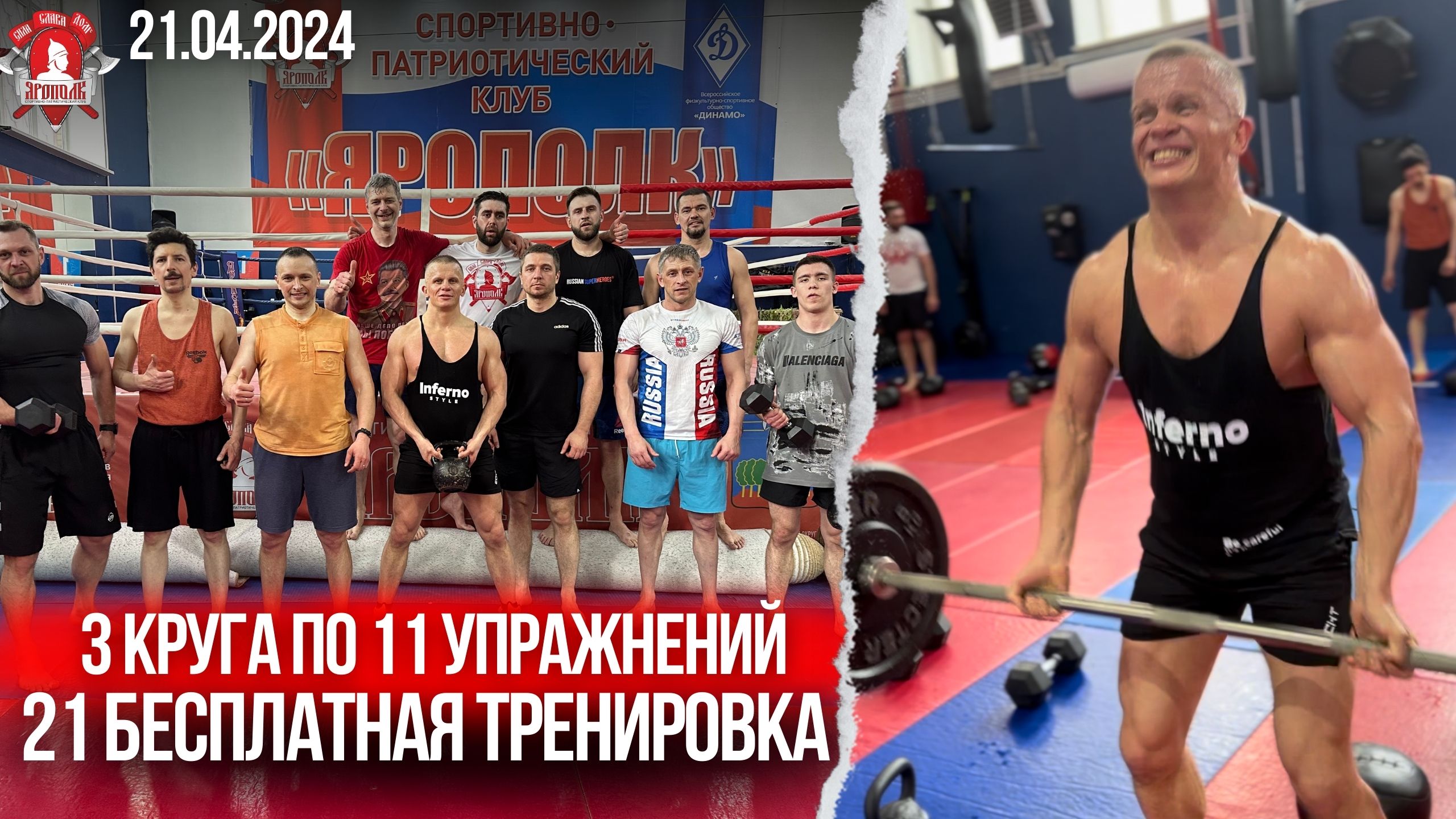 21 БЕСПЛАТНАЯ ТРЕНИРОВКА, 3 КРУГА по 11 УПРАЖНЕНИЙ (плечи, бицепс, ноги, спина и грудь), 21.04.24