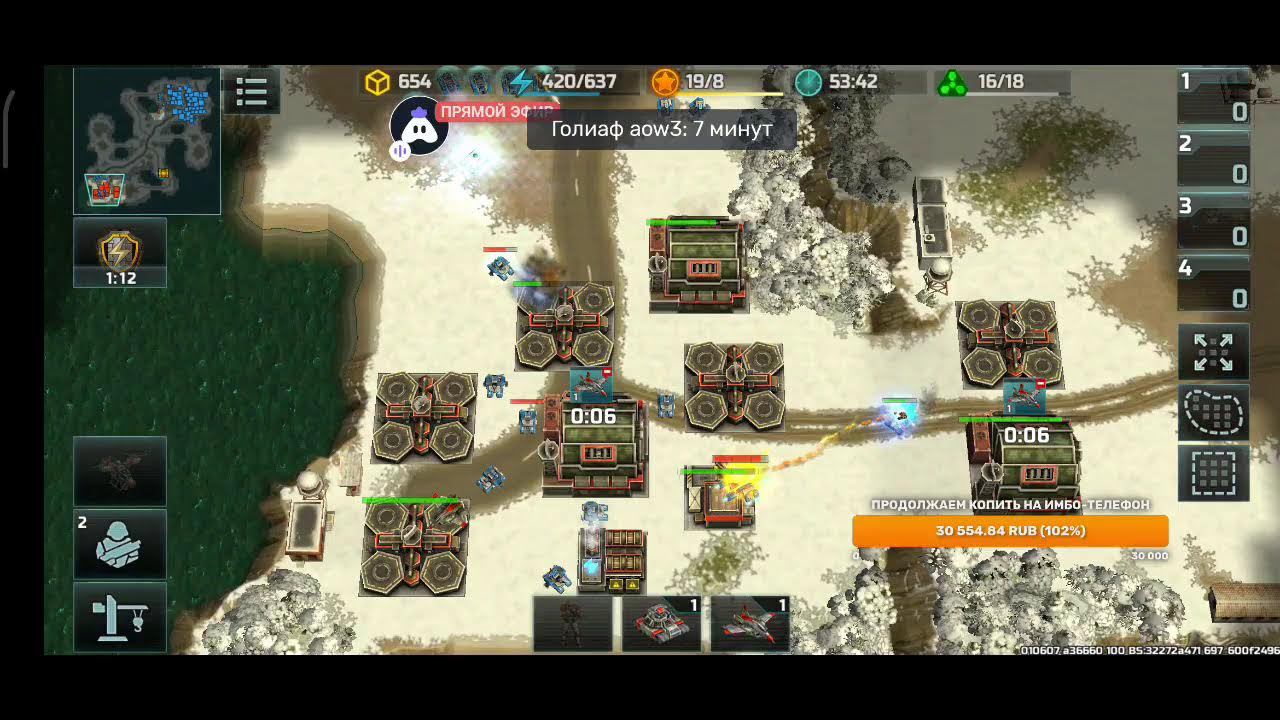 Поддержка автора по ссылке: https://www.donationalerts.com/r/rincks райффазен банк 2200 3005 1695 5281 телеграм группа для подписчиков https://t.me/art_of_war_3_rincks_sopra Продлить стрим:300 руб Смена фракции:200 руб Тренировка:300 руб 2х2: по совести Покажи кач: миллион рублей Закончить стрим:1000 руб Так же можно заказать челлендж. тоесть дать стримеру задание за определенную сумму. Например: сыграть только авиацией или вообще без неё,ну и так далее. Ссылка на игру: Долго искал настоящую стратежку на телефон, как старкрафт. Наконец нашел Art of War 3! Очень крутая игра! Вот ссылка, качай, тебе понравится: https://redirect.appmetrica.yandex.com/serve/169878688668608468?recruiter_id=1111515909