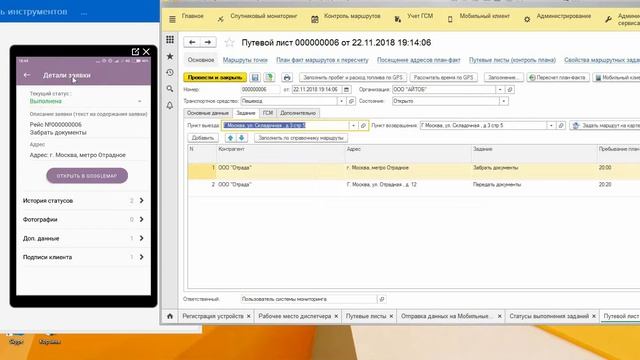 АРМ водителя «ITOB:Мобильный клиент» в программе 1С:ЦСМ ГЛОНАСС/GPS (часть 3_2018)